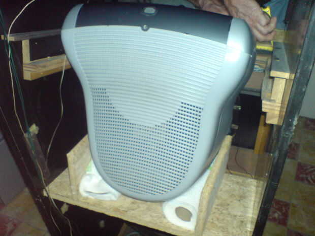 Si todavía existen los viejos puntos de montaje del monitor viejo i recomendamos que utilice los. Le ahorrará mucho trabajo y el monitor estará en un buen ángulo predefinido. Tuve que hacer un poco más primitivamente, pero funcionó. Me tuvieron que instalar una tarjeta para soportar al monitor y usa rollos de cocina para estabilizarlo. El monitor que tengo instalado ahora es un 17 monitor HP que permanecerá allí hasta que encuentro uno más grande.