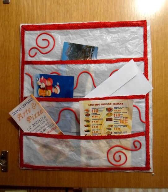 estas bolsas están hechas especialmente para puertas de gabinete, pero se puede también colgar en la pared si lo prefiere. Se puede utilizar como organizador para tarjetas postales, cartas, facturas, menús, etc.. Apuesto a que todo el mundo tiene desorden de papel en alguna parte... este es el lugar adecuado para organizar y ocultar!