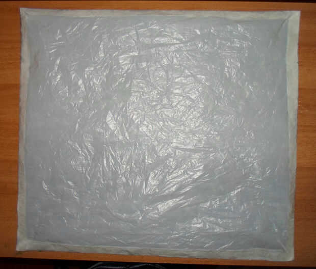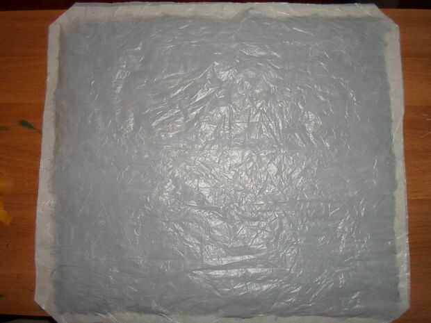 Cortar los 4 ángulos del bastidor y doble los lados (Fíjate en las fotos). Asegure con pegamento.
