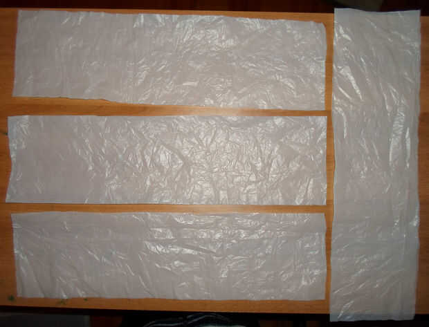Tomar el resto de su bolsa de plástico y cortar otros 13x39cm 4 rectángulos (5.11 x 15.35 pulgadas). El lado más largo es la longitud del lado corto de la almohada más 2cm (dejando el marco hacia fuera).