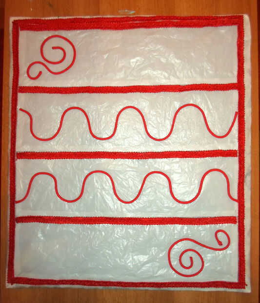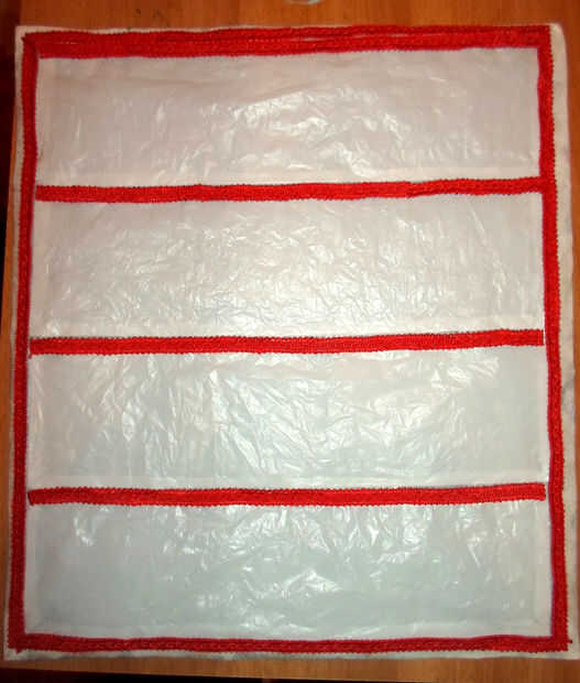 Luego cortar algunas cadenas rojo y pega en los bolsillos creando diferentes formas, se puede ver todo en las fotos! :)