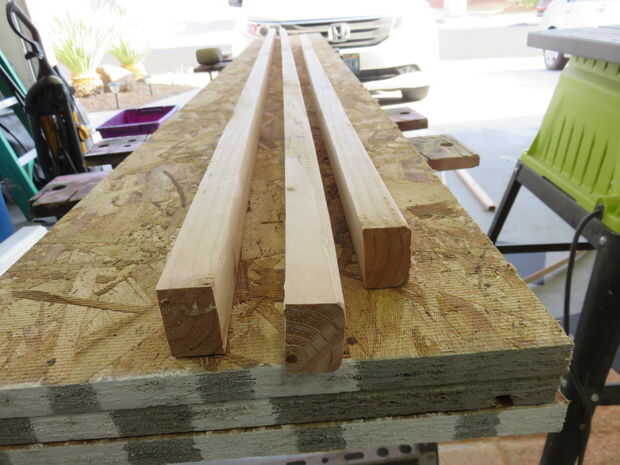También podría ser capaz de conseguir las hojas de corte donde los compraste. En este punto, arrancaron un 2 x 4 en tiras de 1". Estas tiras serán los soportes principales para los gabinetes.