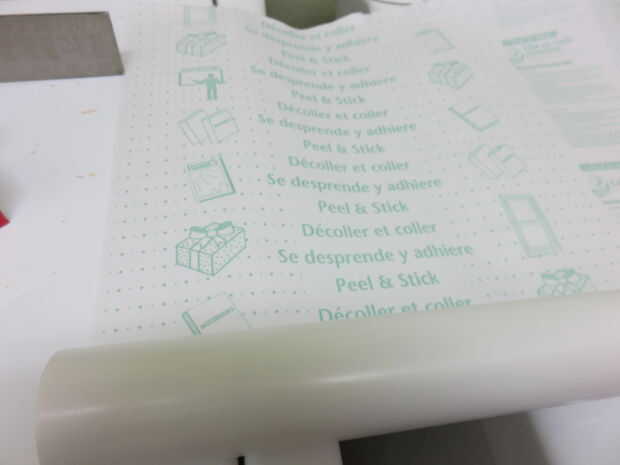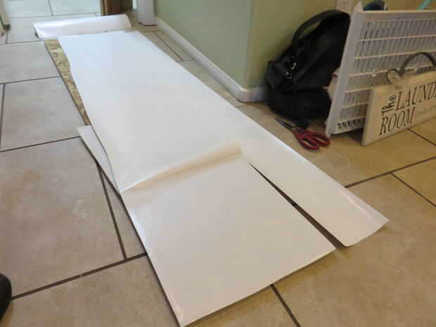 Ahora que disponen de todos los estantes, es tiempo para cubrir la madera comprimida. Uso del trazador de líneas adhesivo estantería aquí. Esto se puede comprar en rollos en tu tienda de mejoras para el hogar. Me gusta empezar la sección en un extremo y luego tire el adhesivo protección papel hacia fuera debajo de él. Como se quita el papel el trazador de líneas se adhiere a la plataforma. Esto evita que el trazador de líneas planas que mantiene a las burbujas no deseadas.