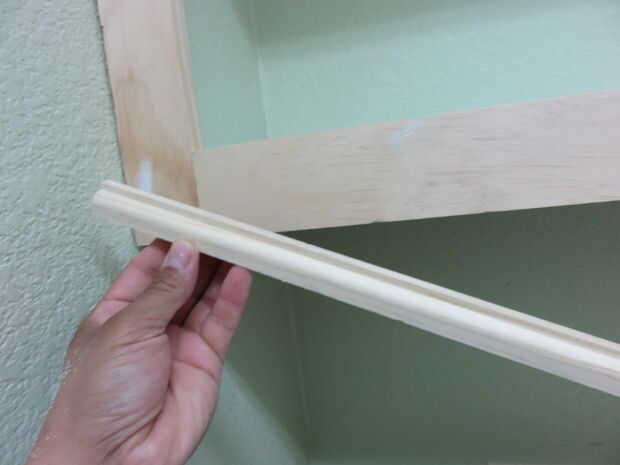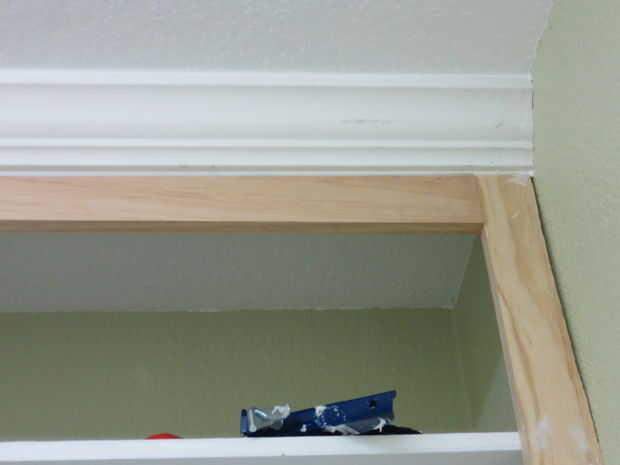 Cubrir los huecos alrededor de los bordes con el moldeado. Usé mi router para hacer mi propio. Corte una sección de moldura en la parte superior.