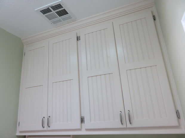Para ayudar a colgar las puertas corté 1" pedazo de madera por un espaciador y lo colocó en el menor del moldeado. Las puertas se sentaron en el espaciador mientras que atornilla en las puertas. Por último instalé manijas.