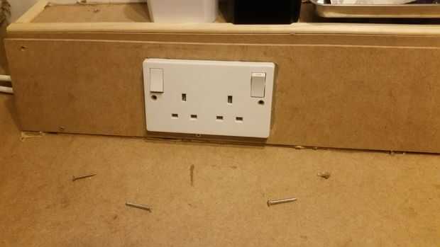 Entonces la idea era instalar tomas eléctricas n al frente de estas placas de cara oculta los cables y darle un mejor acabado de mirada. Aquí vamos... sólo algunos toques a hacer ahora.