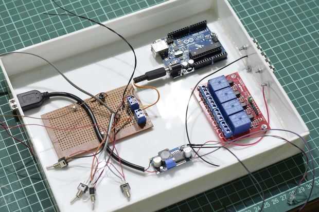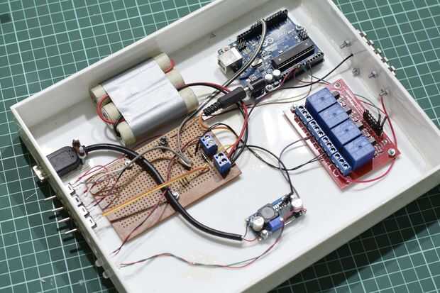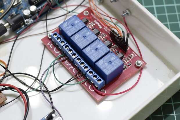 El circuito es que un poco desordenado poco su establo. Cable los relés que se deba. Para el Relais solar, amplié los cables del circuito de perfboard de y para los otros dos relés, alambré directamente a los módulos.