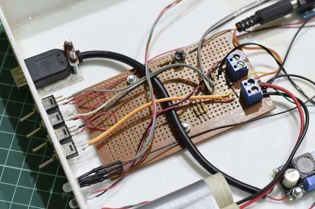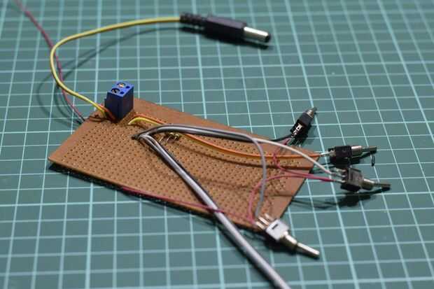Bien la construcción comienza por cortar una pieza decente de perfboard. La soldadura de los conectores del bloque y el diodo. Hacer las conexiones necesarias. Cable de los interruptores junto con los motivos de resistencia 10 k. Básicamente sólo siga el diagrama y ayuda de las imágenes. Tener en cuenta que el + ve de los interruptores serán + 5v que hilo tan al arduino. El divisor de tensión es también bastante simple. Una vez que usted ha hecho todas las conexiones, mida el voltaje en las conexiones de arduino antes de conectarlo al arduino. Ninguno debería superar los + 5v. También tome nota que el divisor de tensión puede generar mayor que + 5v por lo tanto no le des 10k Variable sin medir la salida.