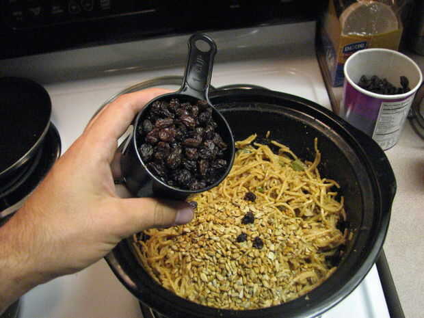 5. homogeneizar las pasas y las semillas por lo que se aprecia una agradable mezcla heterogénea.