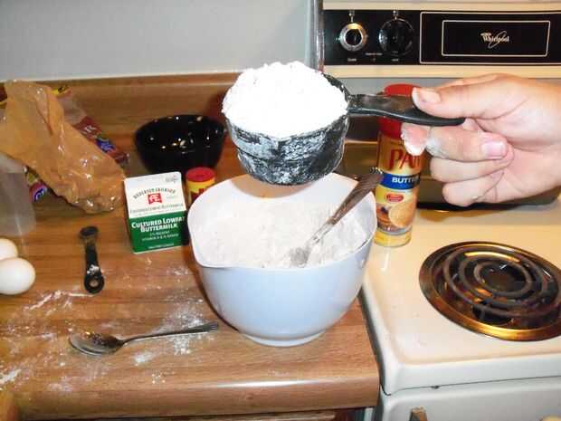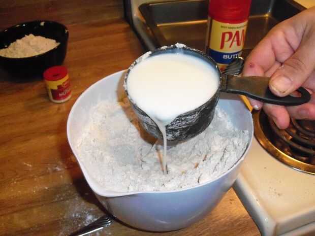 5. Añadir el suero de la leche y los huevos al material en el recipiente.