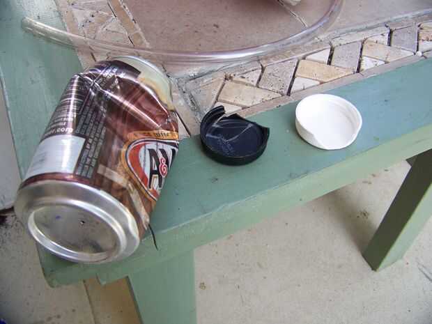 ¡ ADVERTENCIA! Esta pistola dispara su tapa en altas velocidades y puede herir a alguien o romper algo si no tiene cuidado. Esta broma se realiza mejor fuera. A 30 psi esta cosa hacerse un gran hueco en un refresco puede golpear a través de la yarda, pero un psi de fort cinco lo que usted está disparando podría ser destruido (incluido el vidrio).