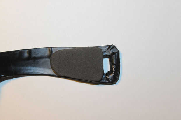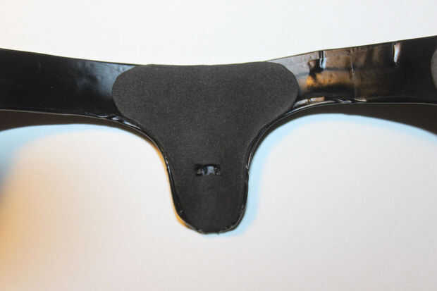 En este paso pegamos la espuma de Eva en la máscara. Estas mejoran el confort del usuario. La espuma de eva también pone un espacio entre las cejas y la máscara que asegura la circulación del aire.
