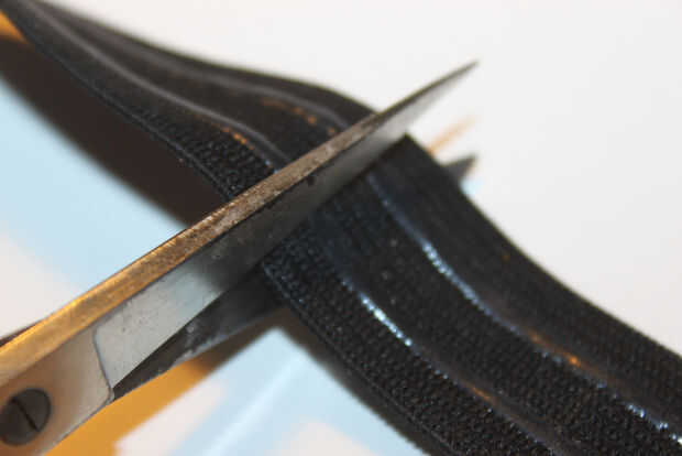 1. Cortar el elástico a la longitud deseada con unas tijeras. Poner la máscara en la cara del usuario y comprobar qué longitud de elástico parece encajar de un oído de la máscara, cerca de la cabeza, a la otra oreja de la máscara. Ten cuidado que el elástico no debe ser demasiado corto causa la máscara pone demasiada presión en la cara del usuario. Pero el elástico no es demasiado largo o de lo contrario la máscara no se ajusta correctamente y será capaz de moverse. El elástico de nuestro usuario mide 33cm.