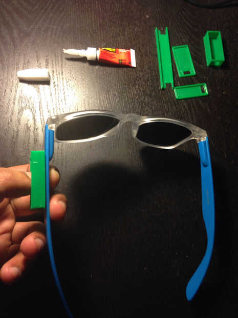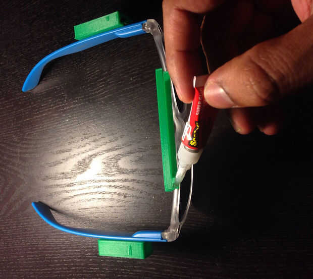 Utilizando un conjunto existente de gafas súper adhesivo 3D impreso piezas, es
