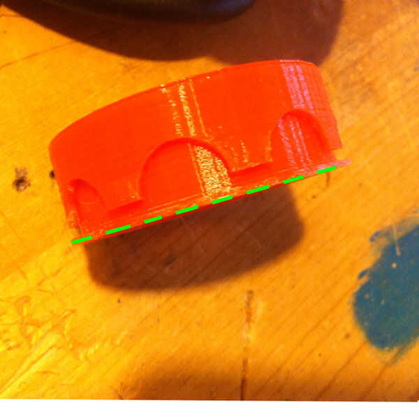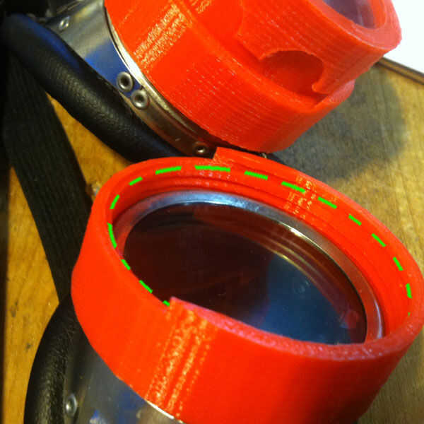 Mis impresiones del prototipo fueron en rojo, pero esto permitió una luz teñida de rojo pasar a través de los lados de la lente, porque las finas paredes del PLA no son completamente opacas.