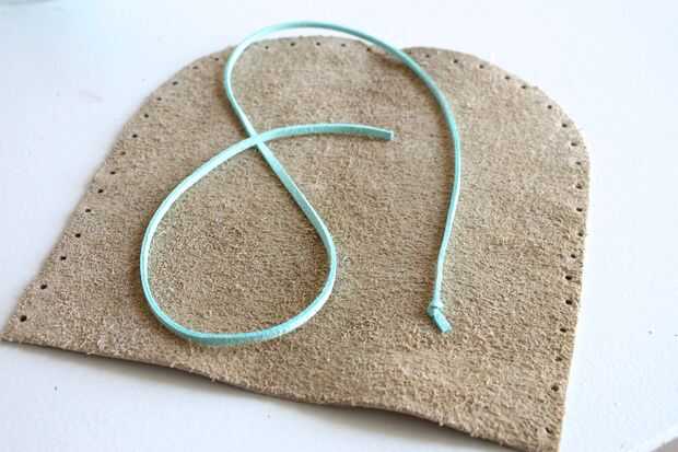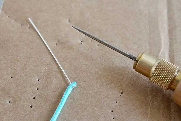 Para el cordón más fácil (porque puede ser realmente frustrante intentar empujar a través de todo por sí mismo) coger un punzón y hágale un agujero en el extremo del cordón.