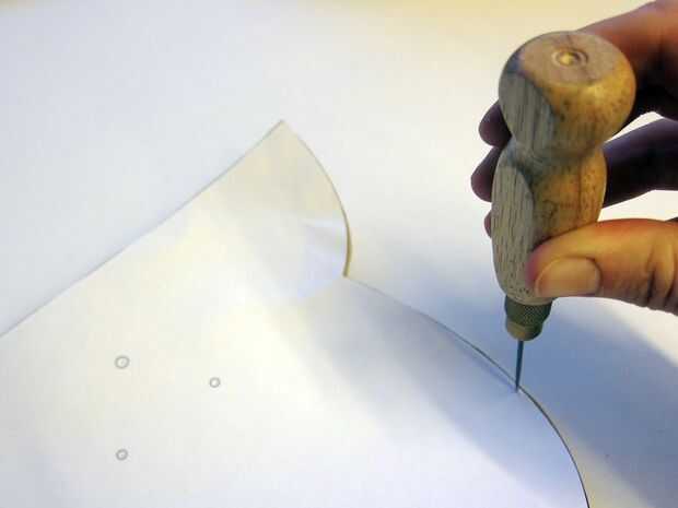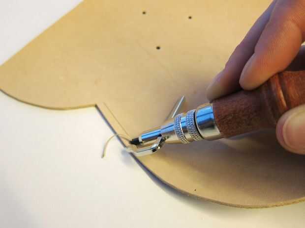 Utilice su Ranuradora a rodillos ajustable para hacer un surco para la línea puntada, utilizando la muesca en el patrón como guía dónde parar. Esto ayuda a los puntos de sutura en posición plana contra la piel y permanecer en el lugar alrededor de la tapa. Deje una cantidad saludable de habitación entre el surco y el borde, ya que querrá recortar después de coser por un borde perfecto más adelante.