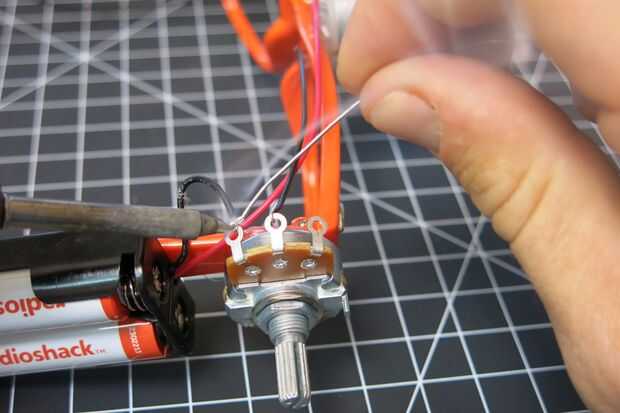 Tiempo los suelde en el lugar, que deben ser cuatro lugares en todo. Dos será tu potenciómetro (terminal izquierdo y media terminal), y dos estarán en su motor.