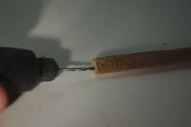 Pero antes de esto, es necesario un agujero para que los insertos entrar. Para hacer esto coge una broca más grande que la inserción de los brazos y más pequeño que la madera. También, asegúrese de marcar cómo lejos abajo de la inserción va a los brazos.