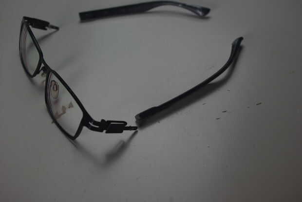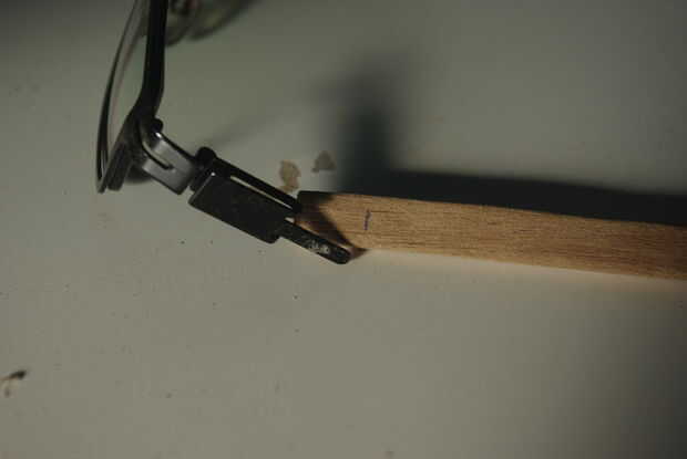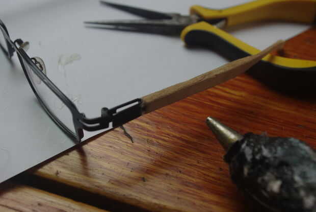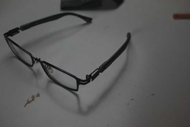 Desglosar el extremo plano de los brazos hasta donde está la cinta. Nota: esto no desordenar y el pedacito de taladro vienen hacia fuera de los bordes. Esto es muy difícil de arreglar y va a arruinar el aspecto de los marcos.