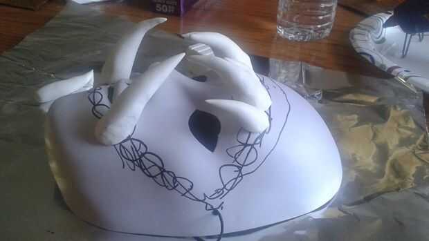 Una vez terminados todos los dientes, con cuidado tire de la máscara y establecer en sus lados en una sartén, en el orden correcto. Ellos hornear según la arcilla las instrucciones del paquete, pero recomiendo hornear durante al menos 30 minutos.