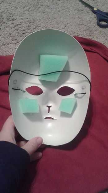 Cortar tu espuma en trozos similares a los cuadros y pegarlos dentro de las áreas frente y pómulos, prueba justo antes de que caliente pegamento para asegurarse de que no está pellizcando la nariz con espuma o golpear sus gafas.