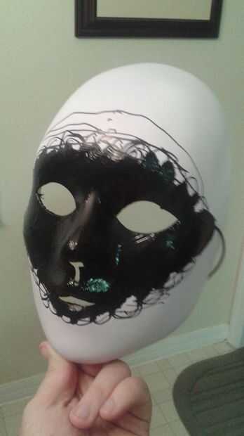 Luego, corte una forma áspera de la zona negra de su tela y pegamento caliente sobre los ojos, nariz y boca. Los dientes cubrirán hasta su borde áspero, pero no realmente la tela donde se pegar las bases de los dientes. No puede sentarse correctamente con una tela gruesa debajo de ellos, o tienen un buen agarre en la máscara.