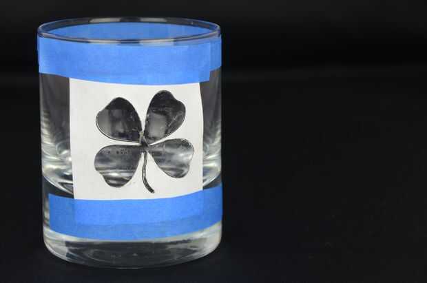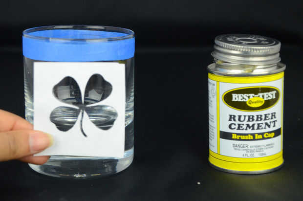 Encontrar la posición deseada el trébol cuatro, y aplicar el cemento de goma para el vidrio.