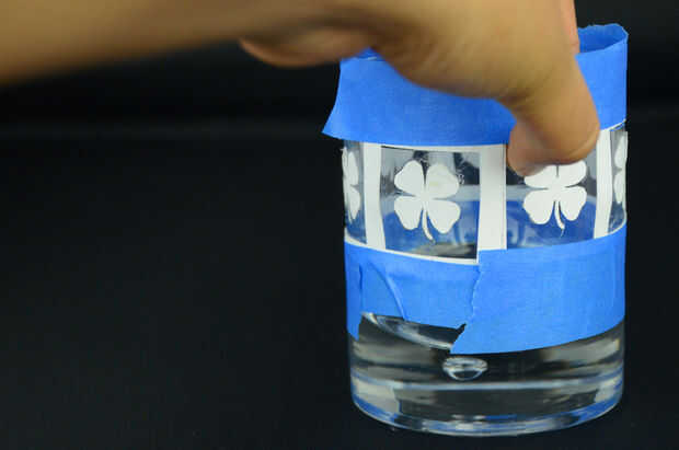 Pegar la plantilla sobre el vidrio. Asegúrese de que su plantilla esté centrado y recto.