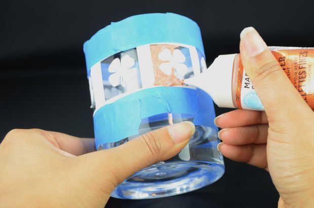 Comenzar a utilizar la pintura brillante de cristal y la pintura en la plantilla. Tratar y ser como como se puede...