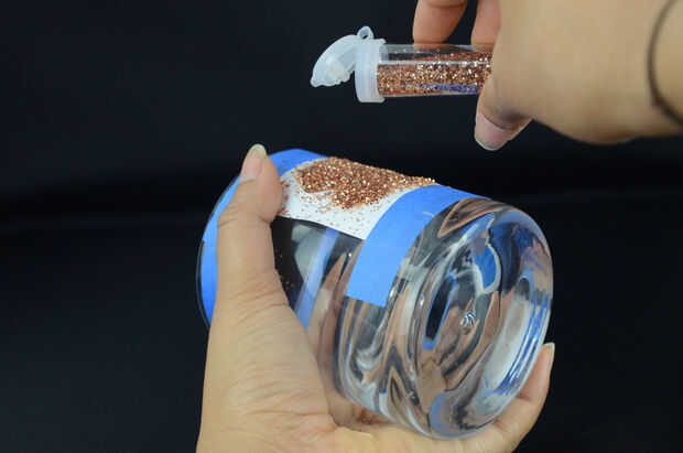 Usted puede hacer lo mismo. Espolvorea el brillo (sobre el papel, para recoger la escarcha que cae) y sacuda el exceso.