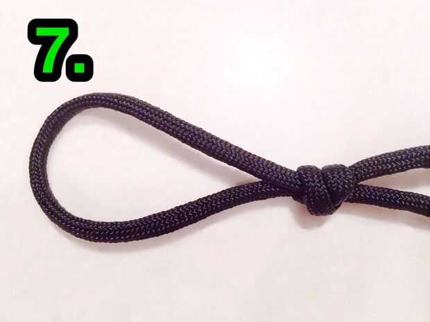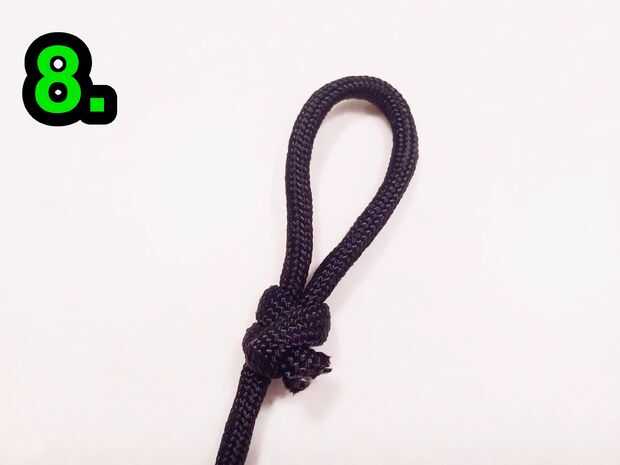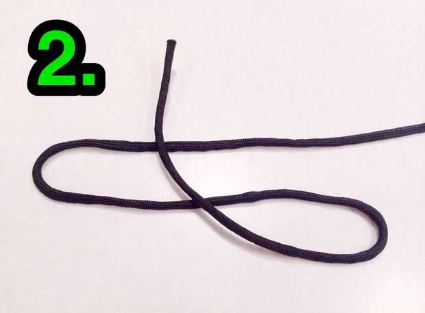 Nudo en ambos extremos de la pieza larga de 3 pies de paracord. Después de completar los nudos, cortar los extremos de exceso menor a 1/8 de pulgada de largo y los extremos para fundir en los nudos de la chamusquina. Tenga cuidado de no fundirlos demasiado!