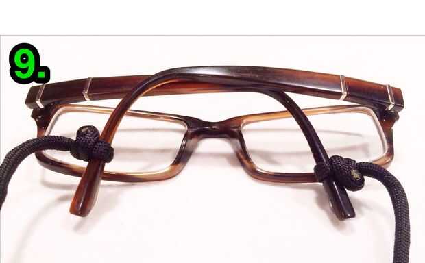 Este nudo que será ser constricting los extremos de las gafas se llama un nudo del resbalón. Es fácilmente desprendible, si usted decide realmente apretones incluso el caparazón de tortuga más diestros.