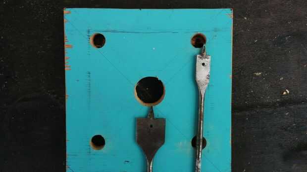 Perfore el agujero central y los 4 círculos primero usando un taladro y brocas, como se ve en las fotos, su mucho más difíciles cortar estos 4 agujeros muy bien si usted ya recortar las líneas.