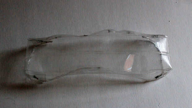 Use su encendedor o fósforos/vela para derretir ligeramente los bordes del plástico PET. Haciendo esto en los bordes de la esquina debe ser capaz de obtener el plástico en más de una forma cuadrada y por hacerlo en los lados largos, que usted será capaz de hacer el formulario más equipado para la forma de su cara.