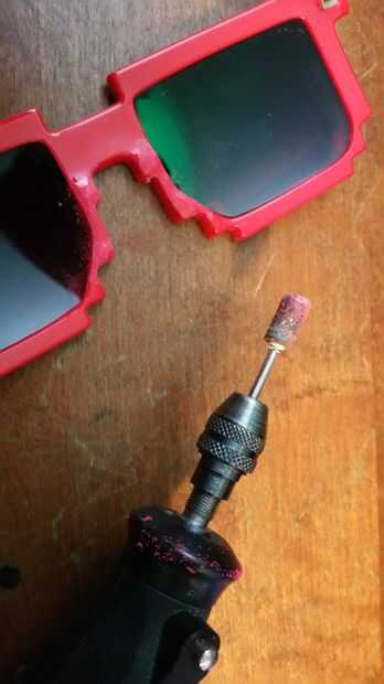 Ahora para esos pedazos de nariz molestos. Sobresalen un poco y evitar que las sombras sentado al ras contra los vidrios. Usé una Dremel con un esmeril para moler abajo de plano. Tomando mi tiempo tomó sólo unos minutos. Si no tienes una Dremel también puede usar un archivo o algún papel de lija, ¡ simplemente tardan más y los dejo con un brazo cansado. No estaba demasiado preocupado por cómo miraba ya que no serían visibles desde el exterior, sólo quería asegurarse de que estaban lisos sin bordes ásperos.