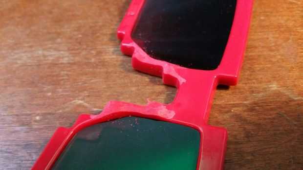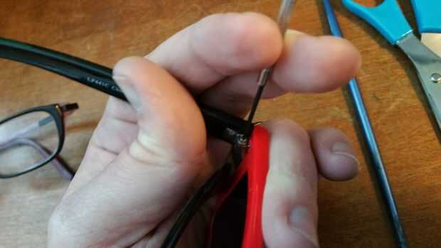 Las persianas necesitan un poco de modificación antes de que podemos crear los montajes de Sugru. Tenemos que quitar los brazos y moler abajo las piezas de la nariz. Utilice el destornillador para quitar los brazos. Eso fue fácil. Estamos frente a un buen comienzo.