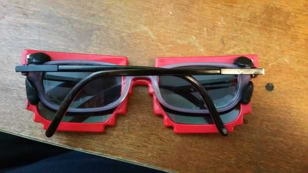 Sacar cuatro trozos de tamaño de guisante de Sugru roll en bolitas y aplicarlas con firmeza a las sombras. Cuando esté satisfecho con la colocación, echa un vistazo a sus gafas y comprobar el jabón, su go-hora.