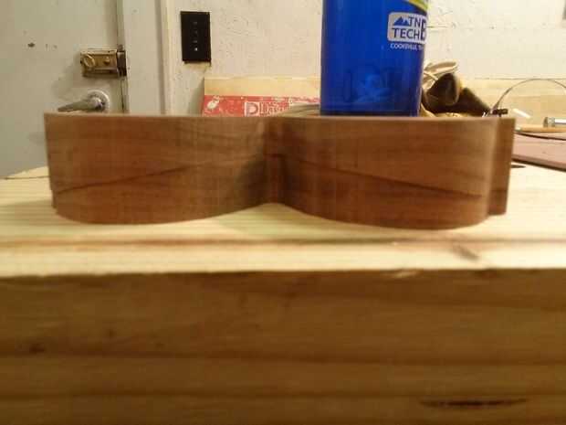 Seguimiento de las gafas de sol en la madera (en este caso es palo de rosa, que es uno de mis favoritos) luego cortarlo hacia fuera en la sierra. Luego, en el lado de la madera, bosquejar hacia fuera la mejor curva que coincida con tu cara y luego cortar en la sierra.