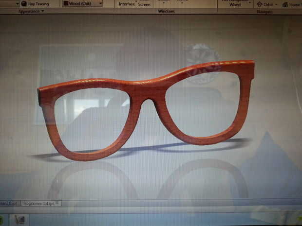 Una vez que tenga el esquema de la lente en CAD puede diseñar lo que quieras. El enfoque más sencillo es dibujar un lado del marco, entonces uso espejo comando para hacer el otro lado. Diseño feliz.