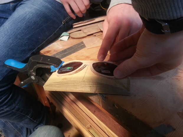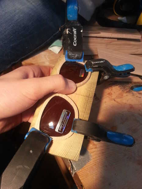 Empezar por hacer un molde con la curva preferible, un ejemplo mostró en fotos más abajo. Cuando laminar entre las piezas con las lentes. Empezar por hacer un test seco para ver que todo encaja correctamente, lo mismo pasa con los pernos.