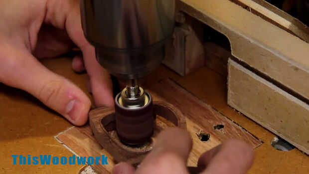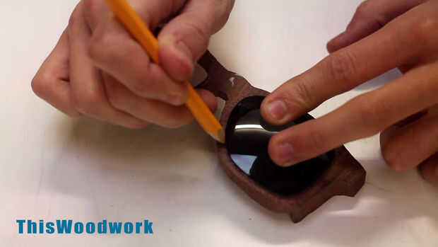 Alinear correctamente cada lente y traza a su alrededor con un lápiz. De la arena cerca de la línea marcada, dejando un pequeño borde poco menos de 1 mm (importante) he utilizado un tambor de lijado accesorio en el taladro para hacer esto.