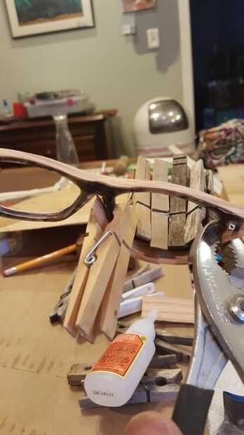 Este paso puede tener un poco complicado. Vas a querer corte tiras un poco más grandes y luego la anchura de sus copas. Entonces ruff el borde está pegado con papel de lija, aplicar el pegamento y de la abrazadera (si usted tiene conseguir cualquier curvas realmente cerradas quizás tenga que utilizar pinzas para ayudar a continuación)
