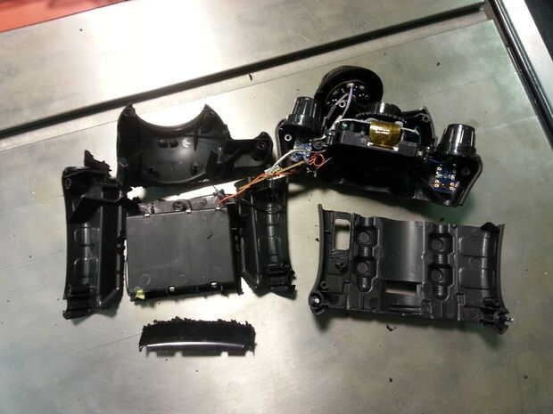 Cortar aparte; Utilicé una sierra de banda para eliminar secciones de plástico.
