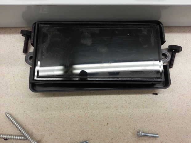 Atornille los tornillos. Profundidad se determinará por la sección de electrónica (establece profundidad para permitir que la sección de electrónica para sentarse a ras).