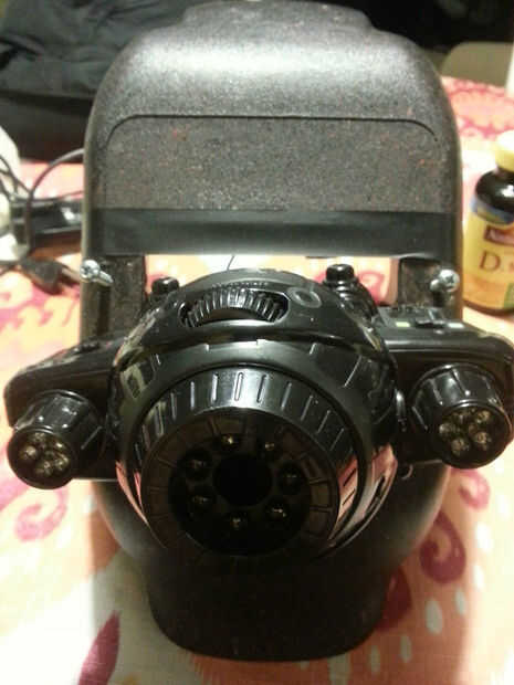 Para montar electrónica primer tornillo de la corredera en electrónica/montaje de empuje hacia el otro tornillo y deslice. la presión realmente sostiene muy firmemente la electrónica. Obviamente se puede montar de manera permanente más pero casi seguro que pondrá en peligro la utilidad original de máscaras. Si vas con montaje permanente te sugiero reducir el factor de forma de máscara en la parte superior (corte de la sección sobre los puntos de montaje del engranaje principal) de la soldadura y usando una tela de lona para eliminar fugas de luz.
