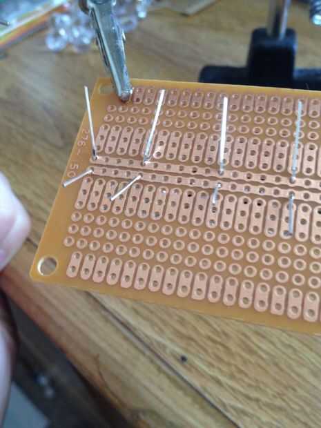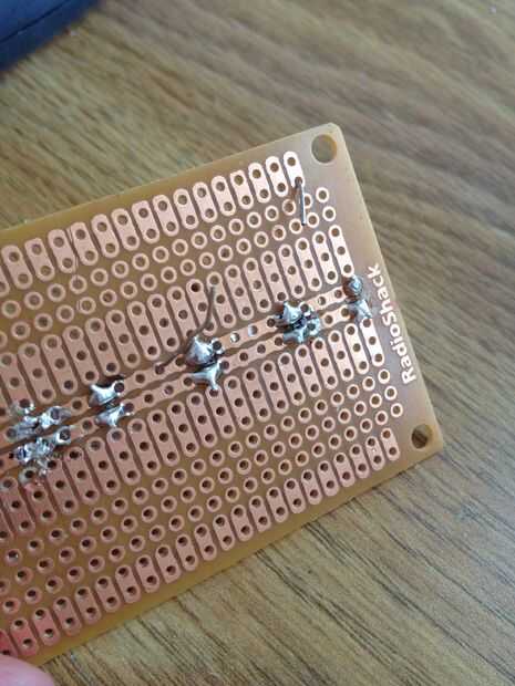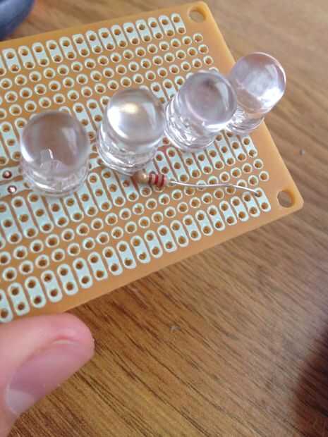 Ahora finalmente llegaremos a hacer el circuito así que calentar esa pistola de soldar! Primero usted necesitará salir de la placa pc y un puñado de LEDs infrarrojos. En medio de la Junta Directiva hay dos tiras de pines intactos. En una tira que va para el positivo de la soldadura conduce (los más), y en la otra tira se suelda la negativa conduce (los más pequeños). A continuación será soldar la resistencia de 220 ohmios de la franja de positivo a la otra parte de la Junta (elegir la parte superior izquierda). Que hacer lo mismo con el plomo negativo usando sólo una simple tira de alambre. Y por último al igual que en la última foto va a algunos alambre multi-trenzado, flexibilidad, para el positivo y el otro cable al otro cable de la soldadura. Cuando termines pega ese chico malo en el auricular! para terminar el circuito de soldar el cable negativo al cable negativo de un conector de batería de 9v. Que solde el cable positivo con un interruptor y el interruptor en el cable positivo del conector de la batería de 9v. Y BAM! listo!