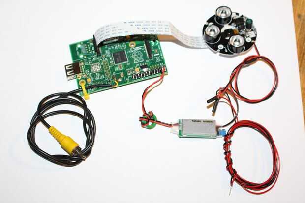 La frambuesa pi que tengo es un original "Un" modelo que ya hackeado para quitar el conector RCA (no para este proyecto) así que luego tuve que soldar un RCA hacia los botones izquierda. Las otras conexiones son los cables BEC que estaban soldados a los pines GPIO Pin 2 (o 4) para el positivo y pin 6 para negativo, vean las fotos. El modelo de la cámara entonces fue conectado a su conector.