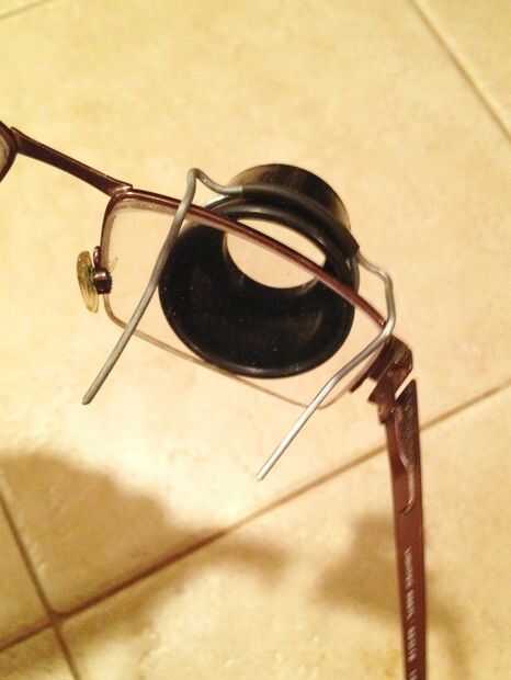 Sólo Deslice la lupa y el sostenedor del alambre sobre sus lentes cuando desee usar la lupa. Sepárela y cambiar la potencia de magnificación insertando una lupa diferente. Este soporte de lupa lo libera para usar ambas manos en un delicado proyecto sin la distracción de intentar guardar la lupa exprimida por los músculos alrededor de su zócalo del ojo.