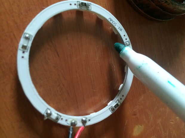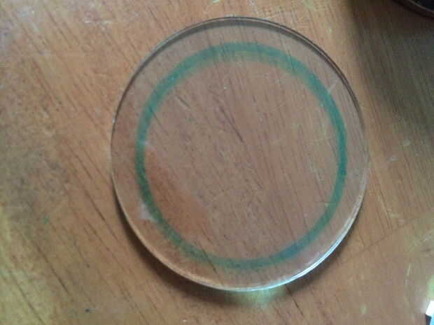 Colocar las luces en la parte superior del vidrio y trace el diámetro interno con el seco borra el marcador sobre el vidrio. El borrado en seco se utiliza para que el marcador no será permanente.